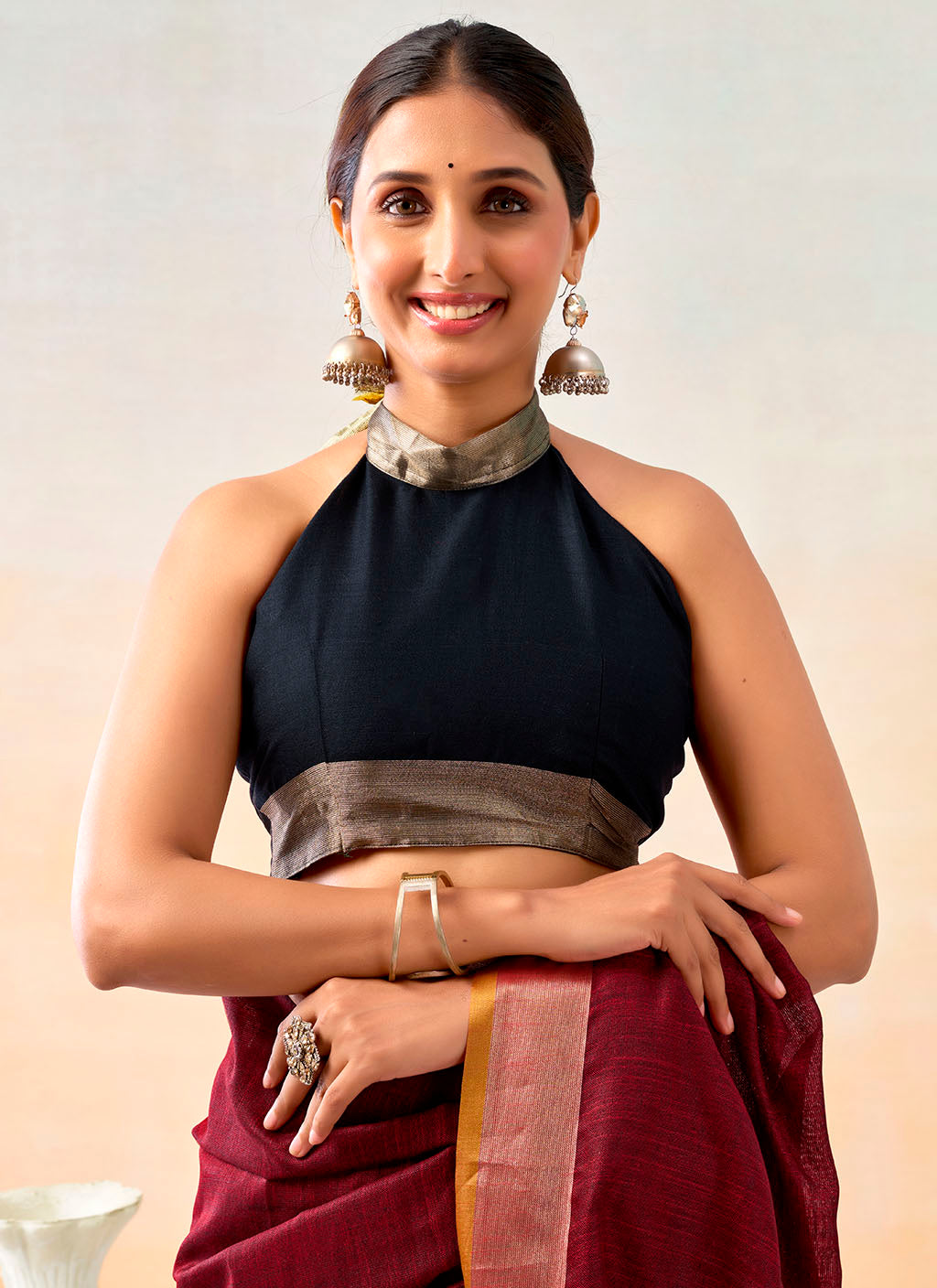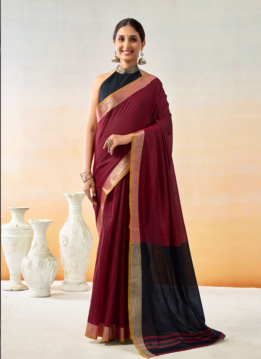 Craft : Handloom Style Thin Zari Weave Border & Contrast Pallu