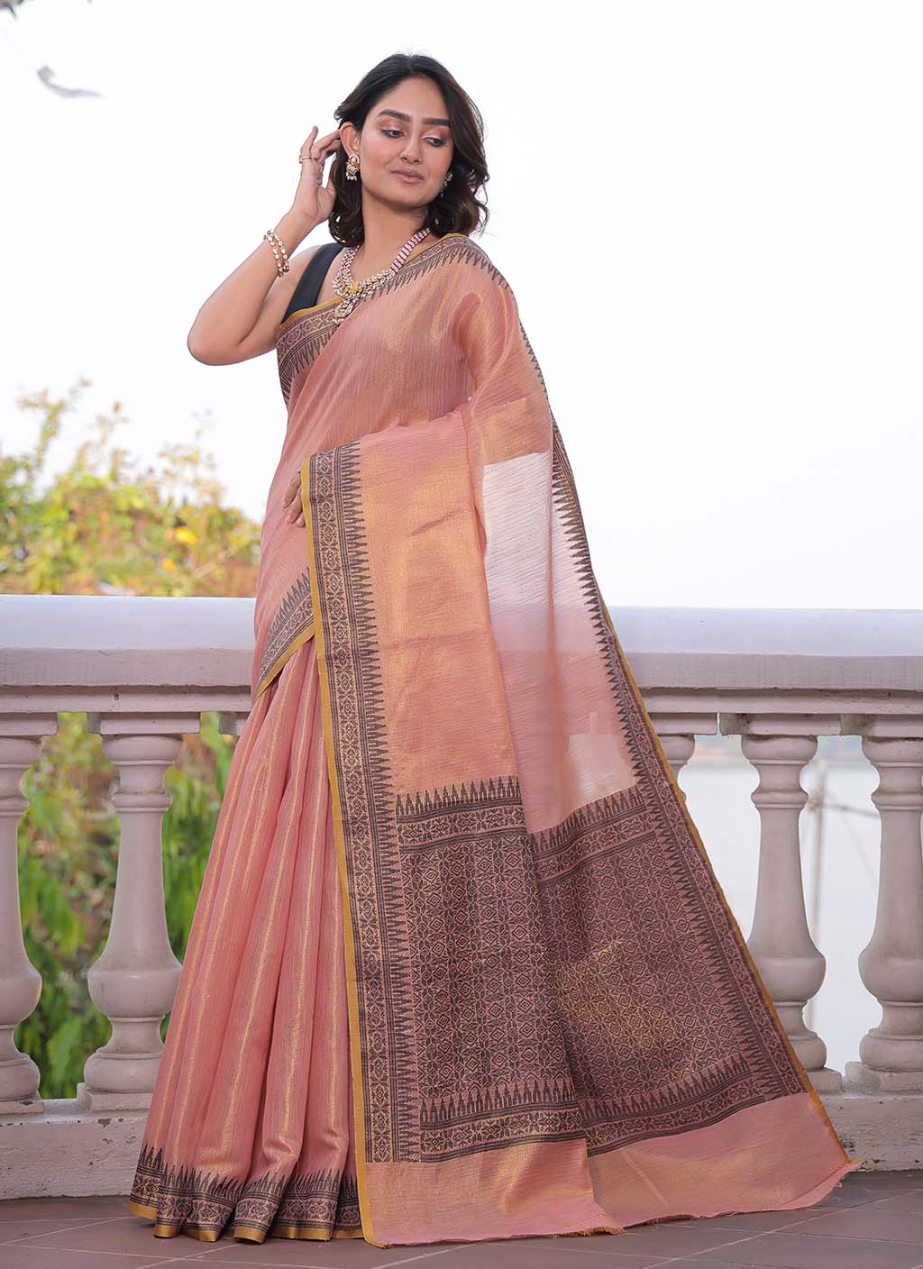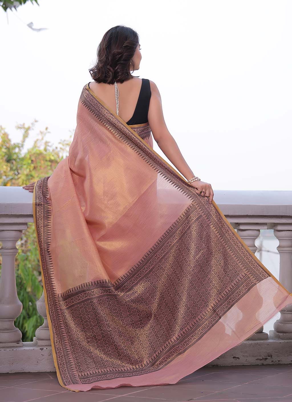 Saree Fabric : Linen Tissue Silk With Weaving Border & Pallu.