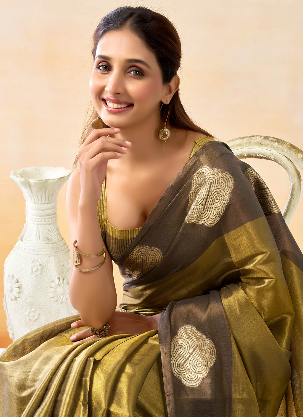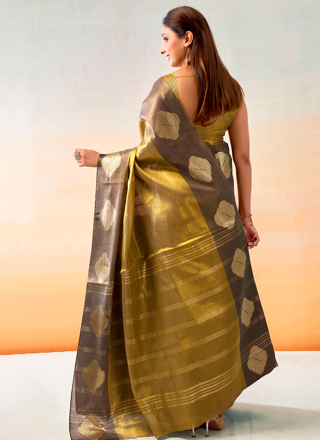 Craft : Contrast Border With Beautiful Weave Buttas & Lining Pallu