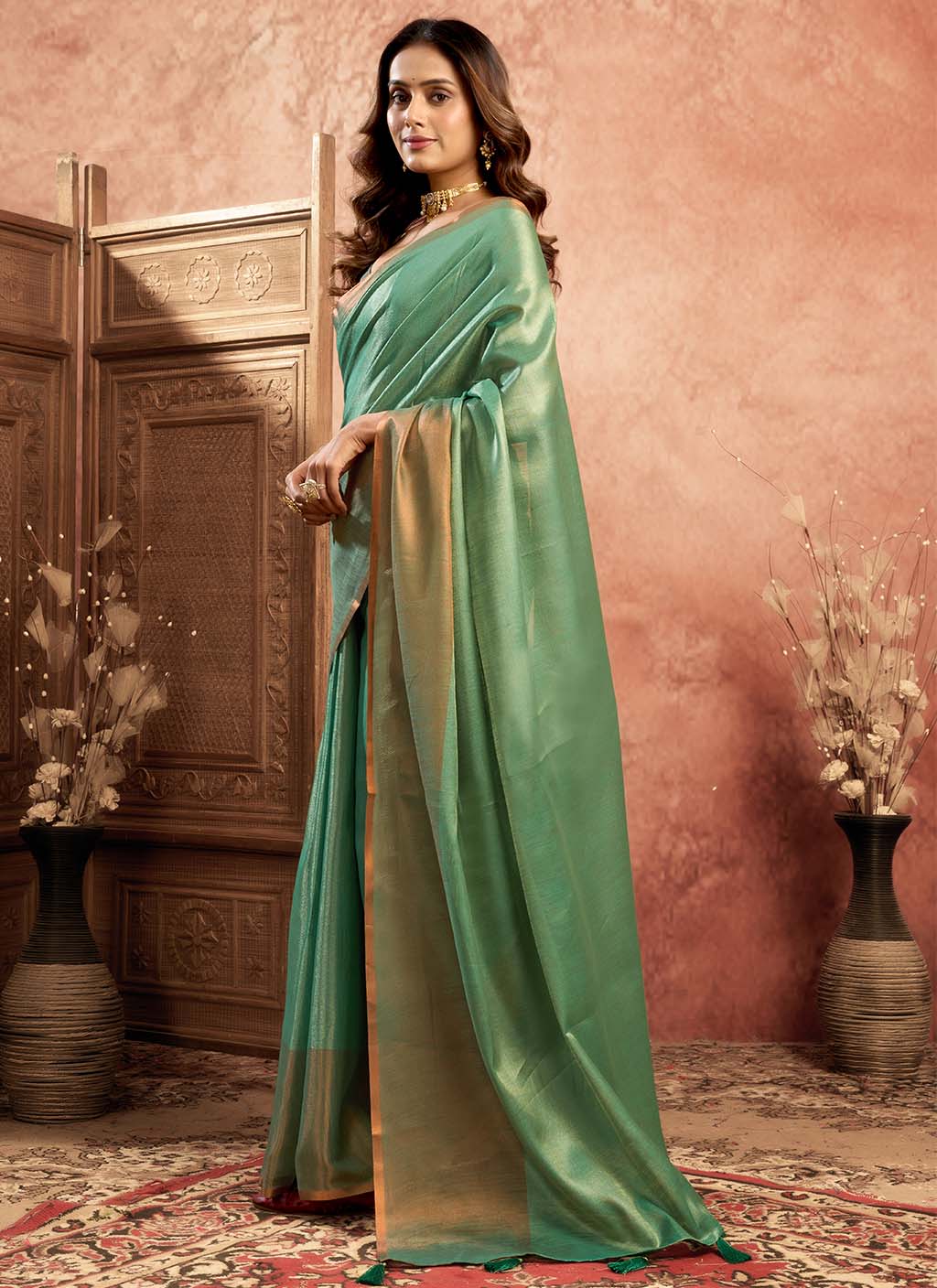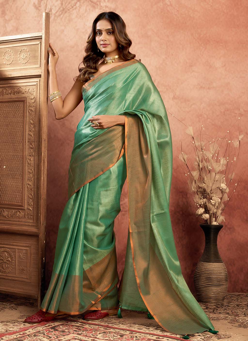 Saree Fabric : Pure Tissue Silk With Contrast Border