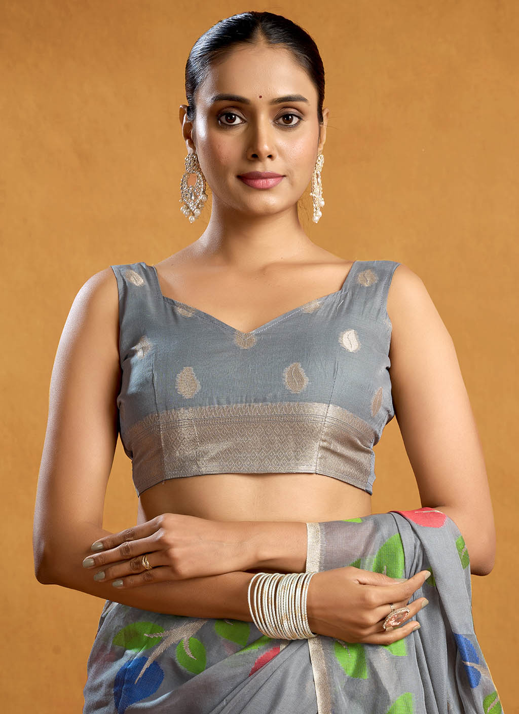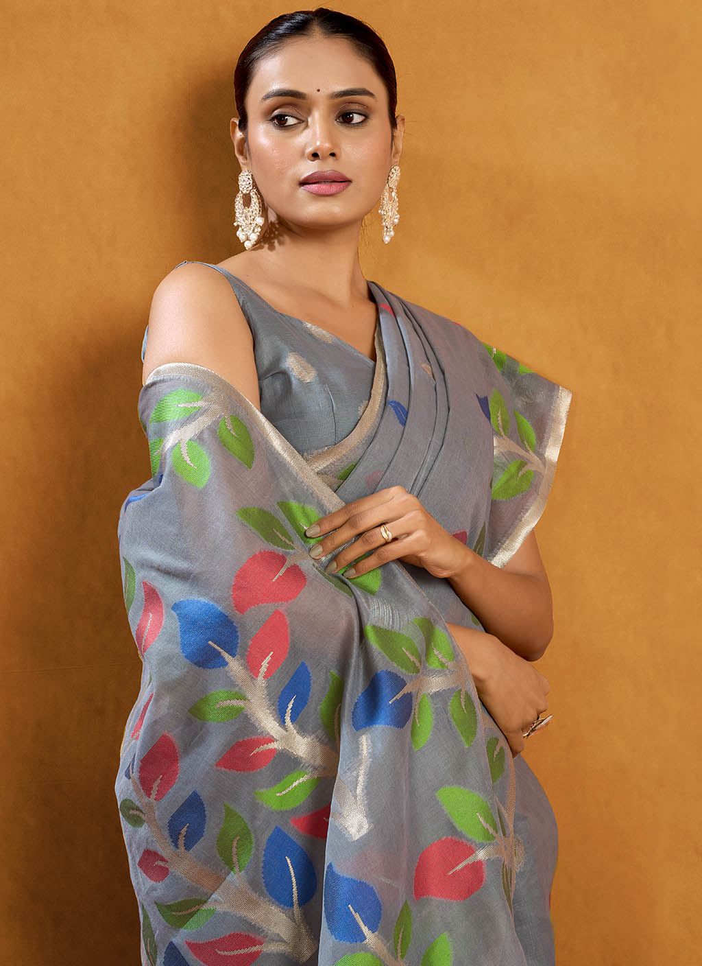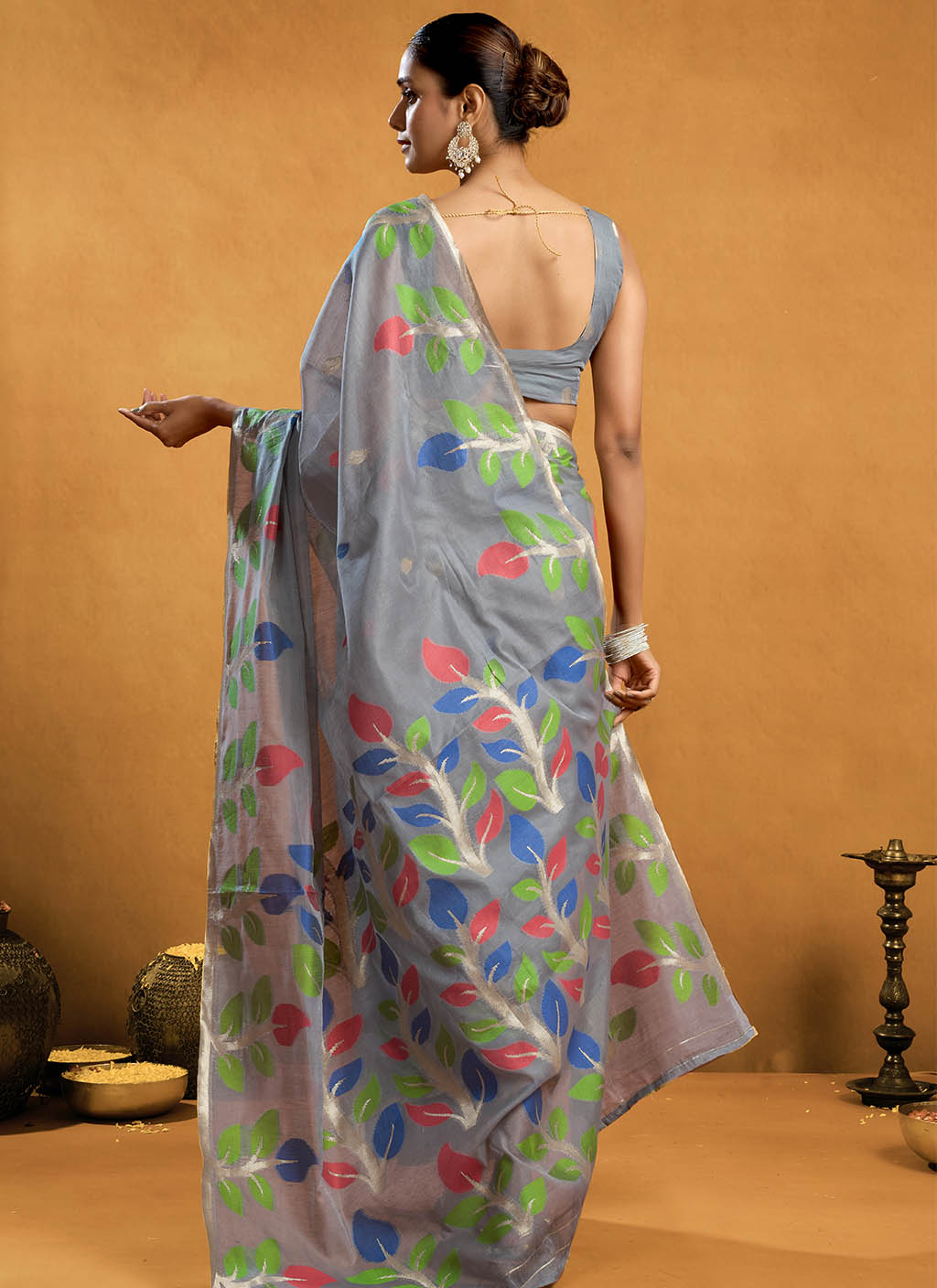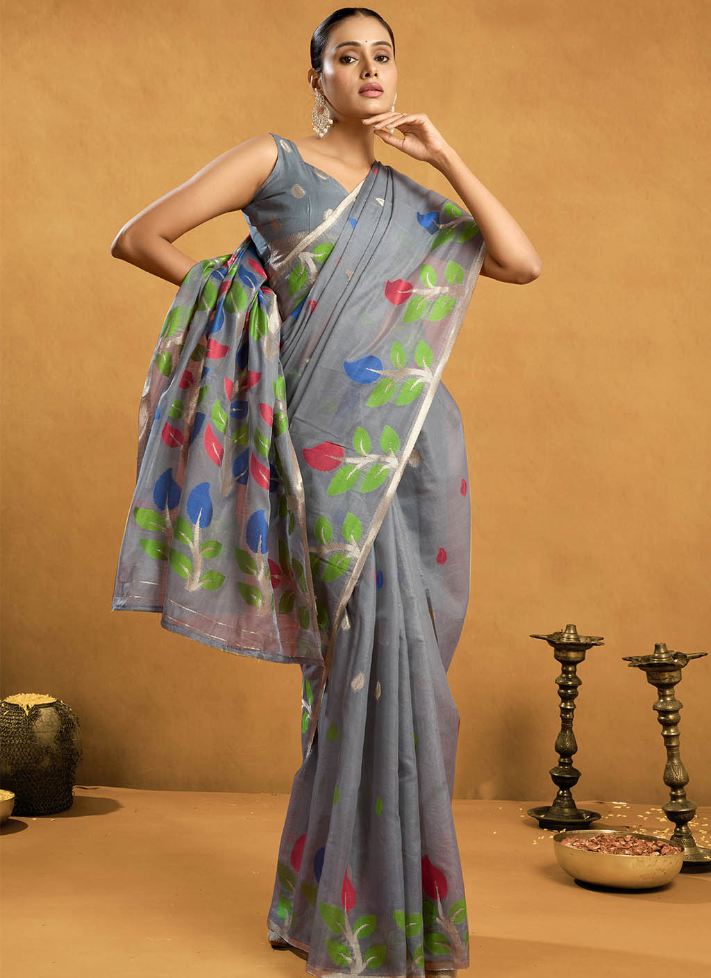 Saree Fabric : Pure Spun Cotton Jamdani Floral Weave Border & Pallu.