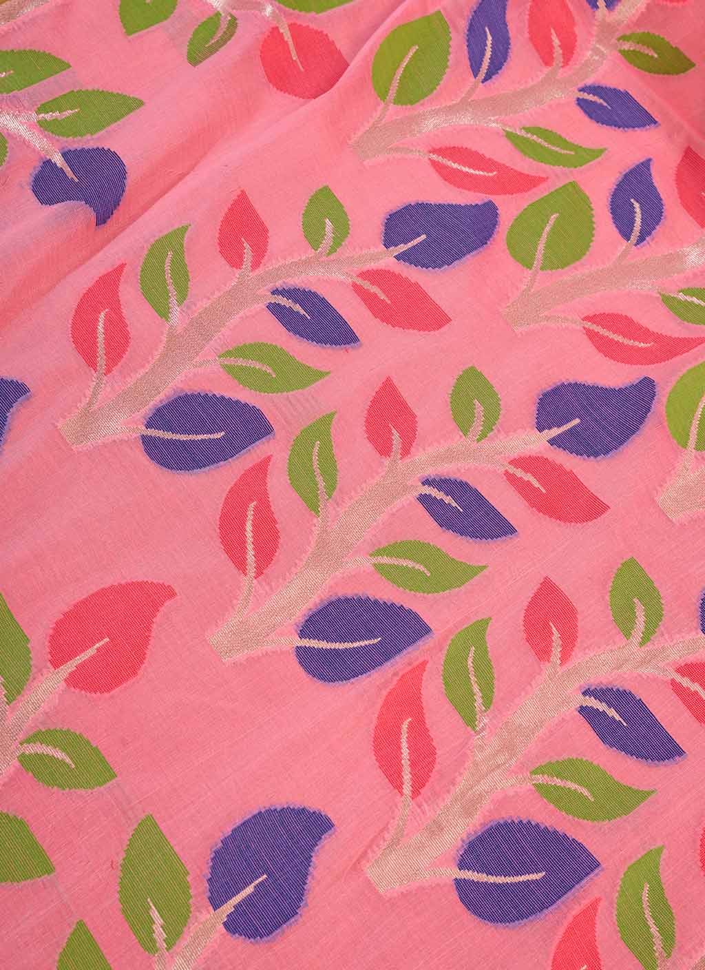 Saree Fabric : Pure Spun Cotton Jamdani Floral Weave Border & Pallu.