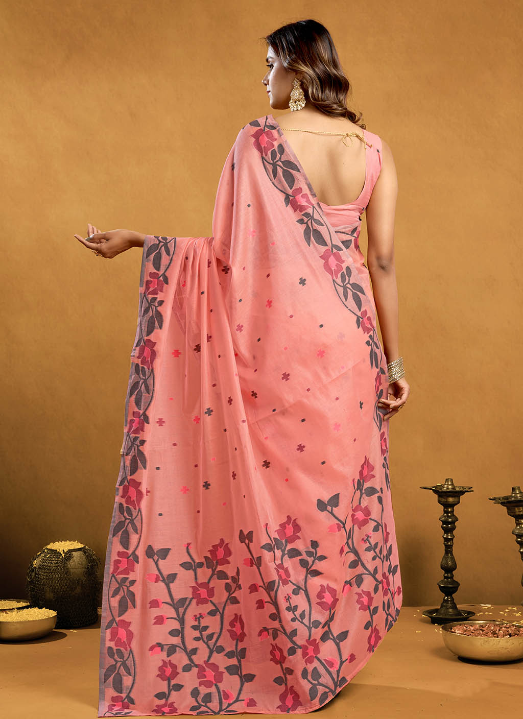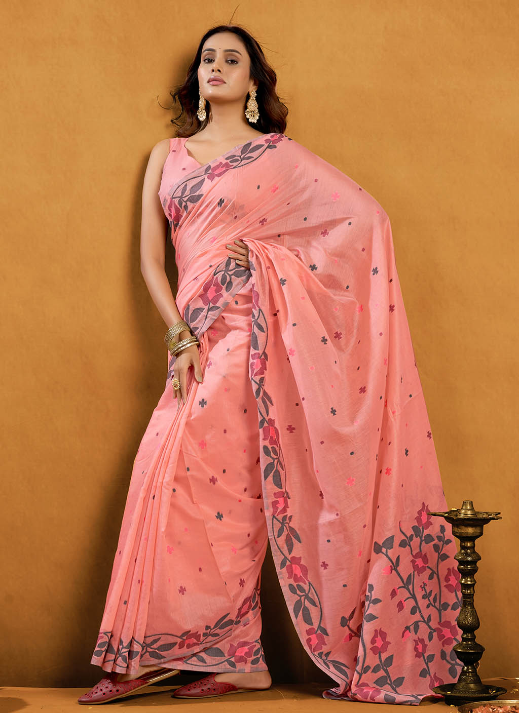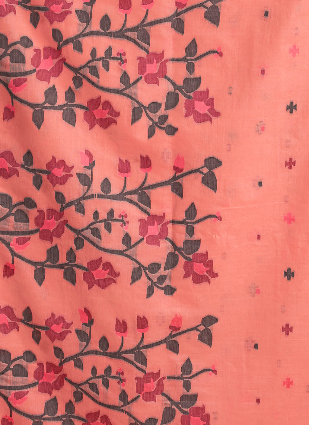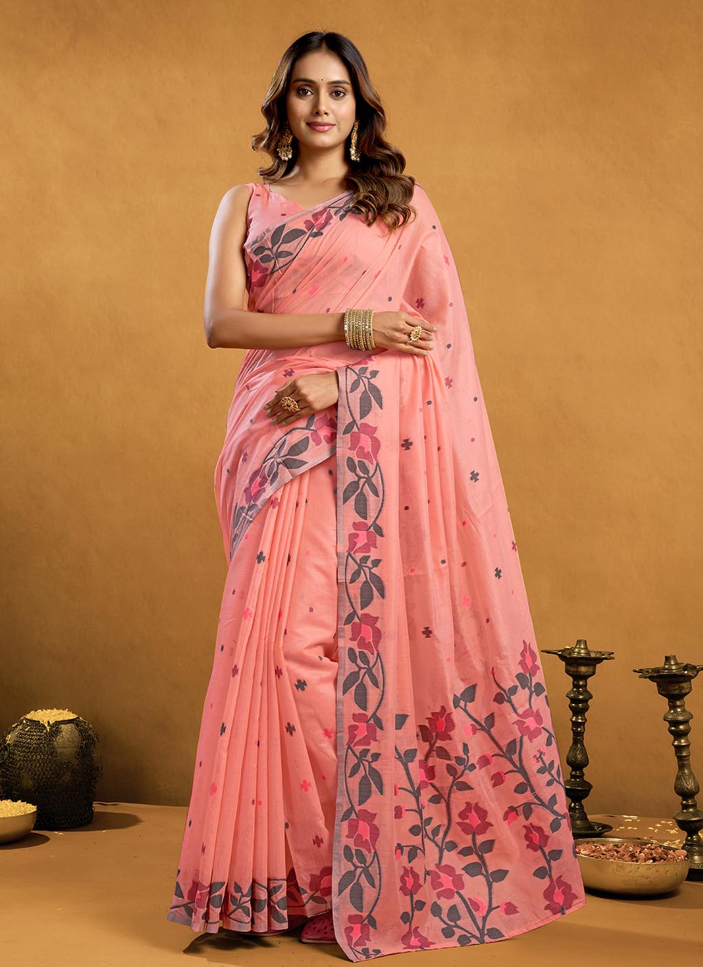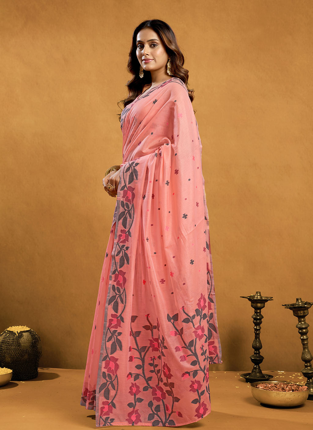 Saree Fabric : Pure Spun Cotton Jamdani Floral Weave Border & Pallu.