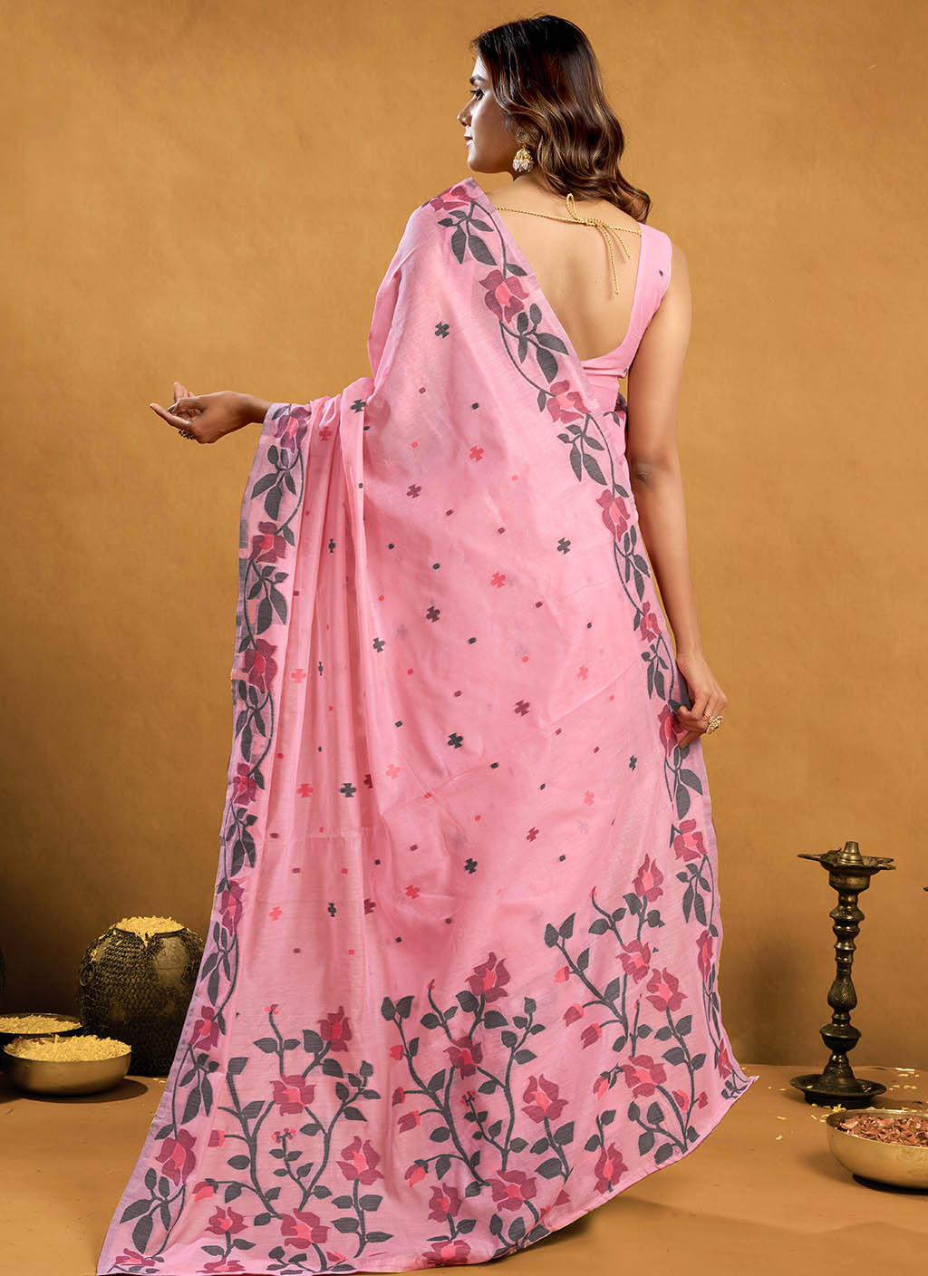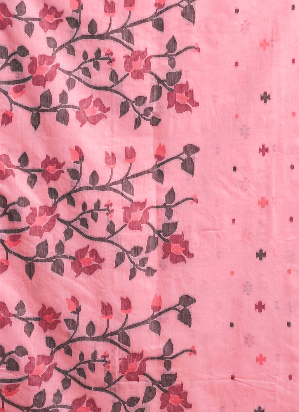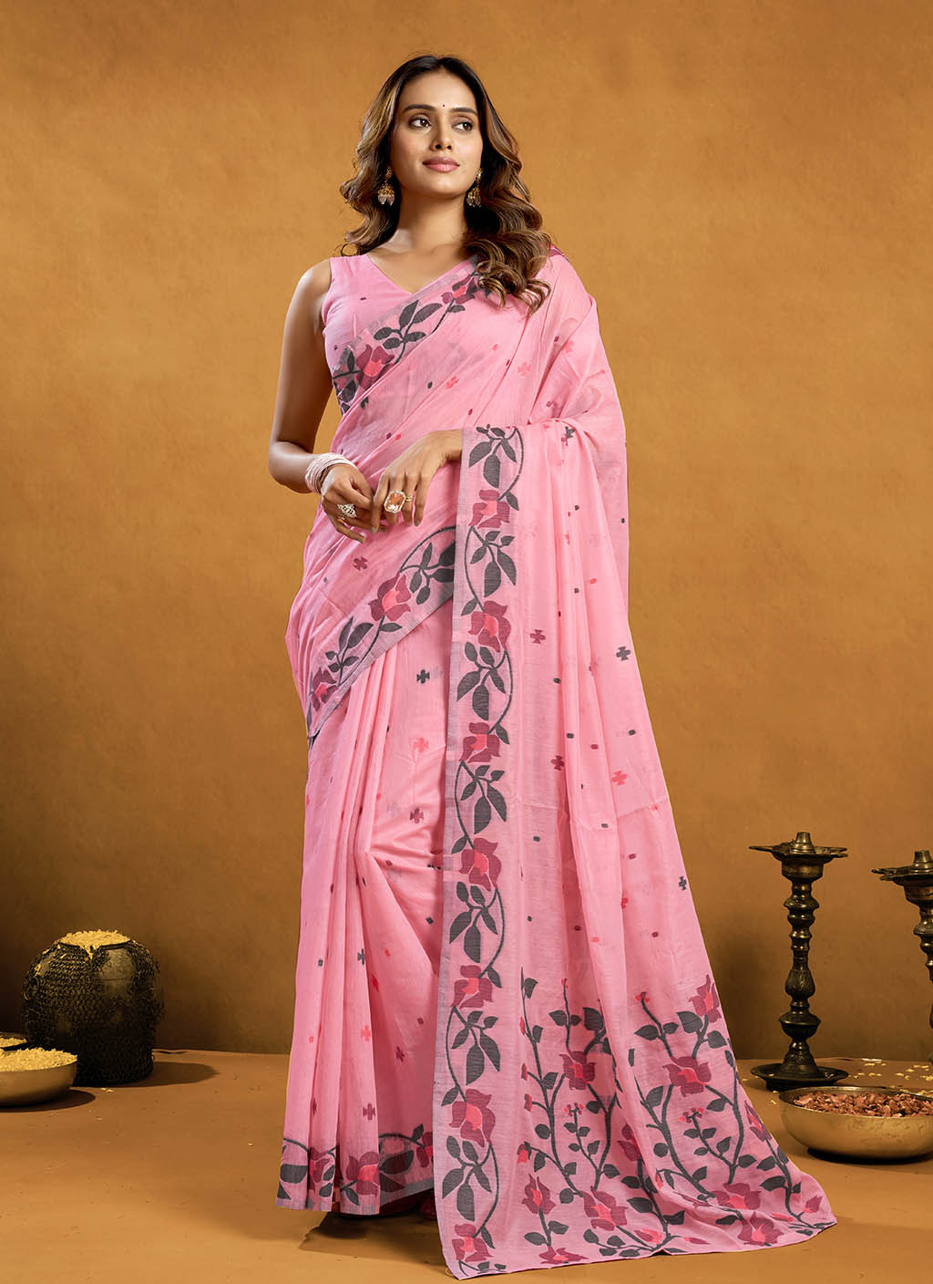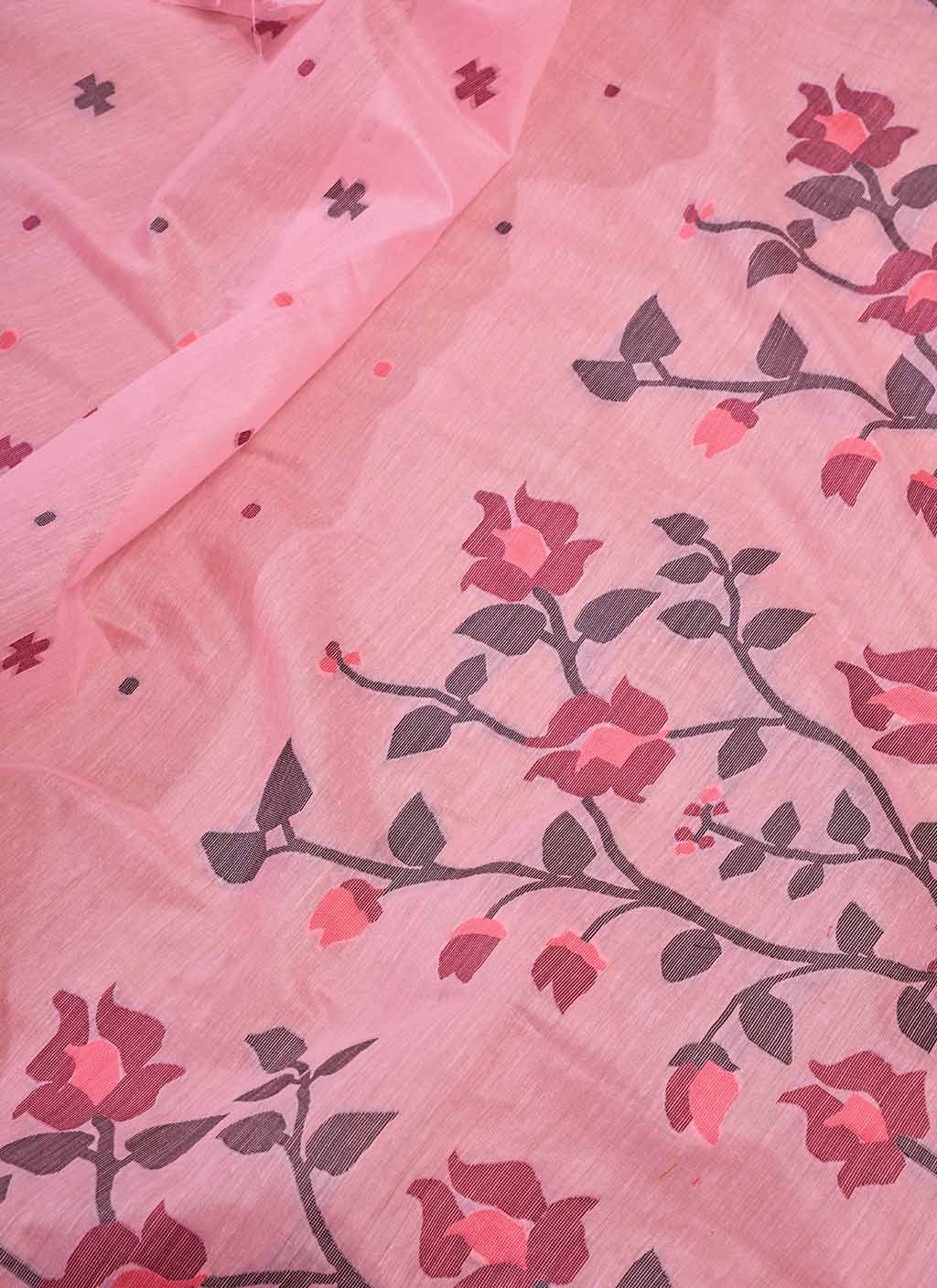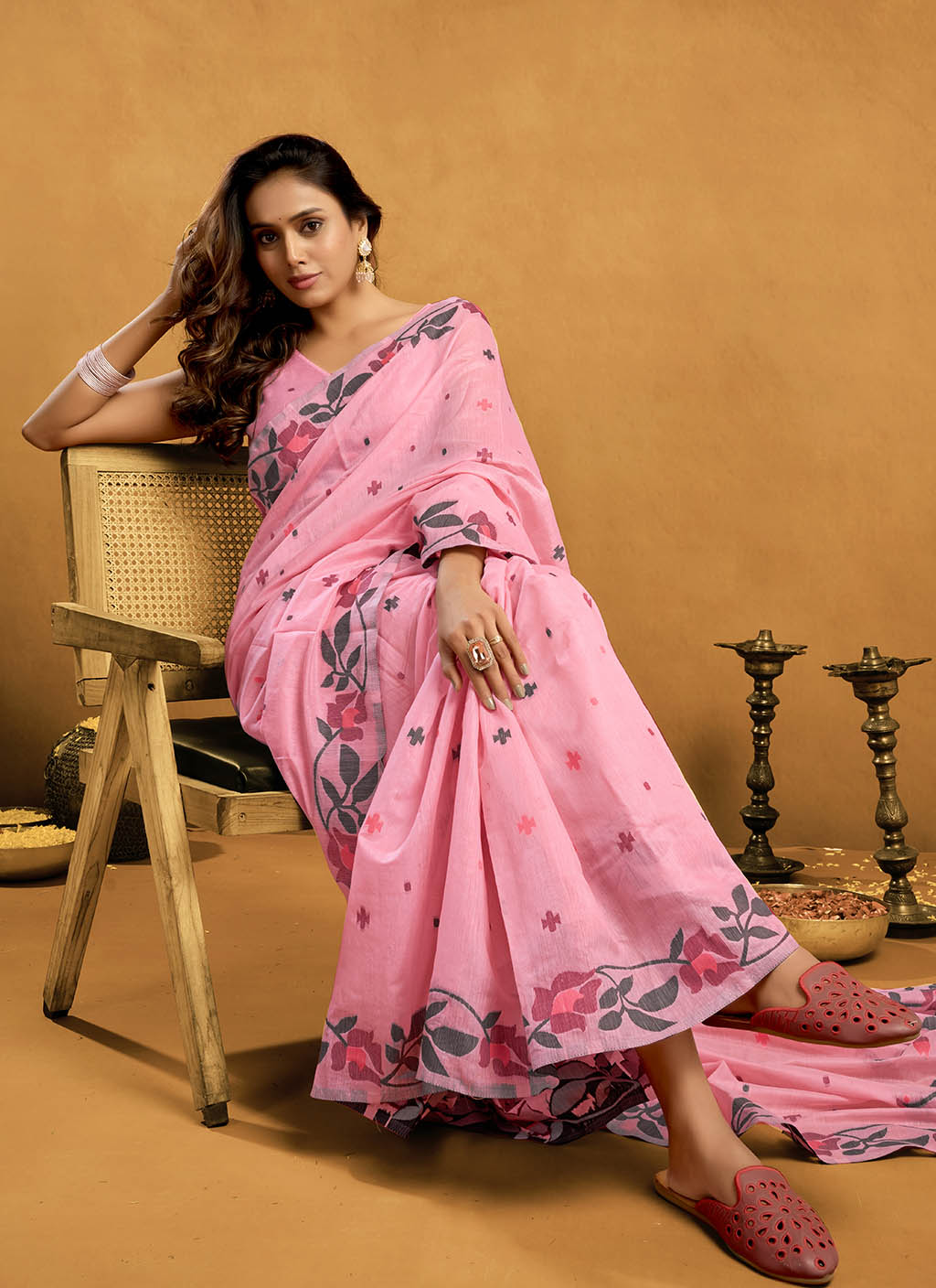 Saree Fabric : Pure Spun Cotton Jamdani Floral Weave Border & Pallu.