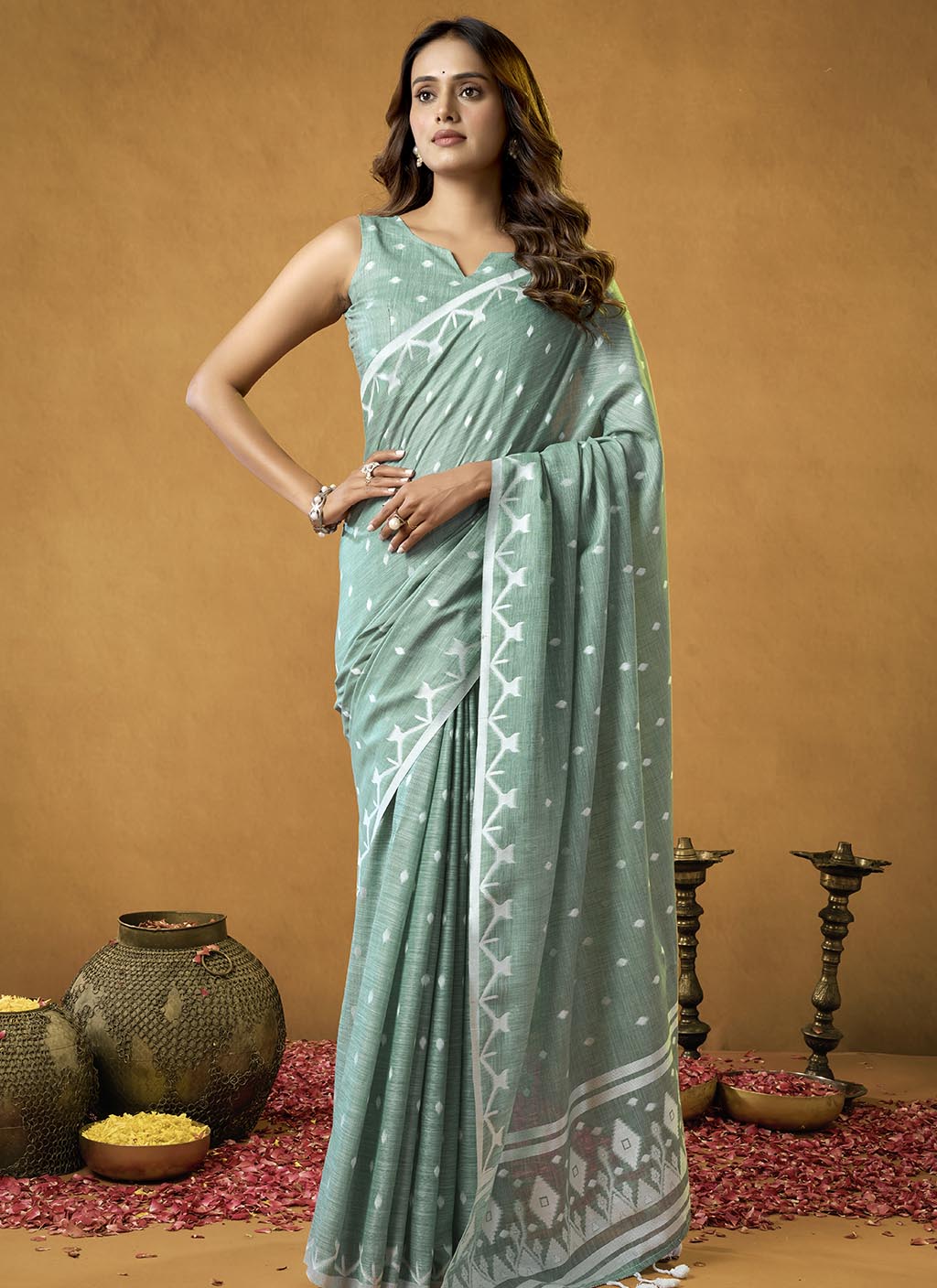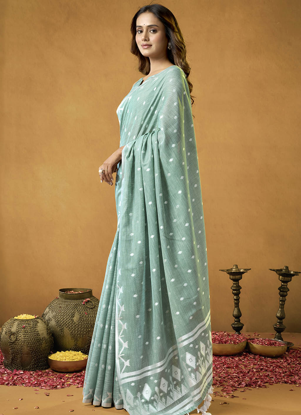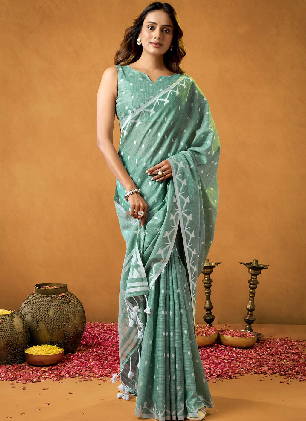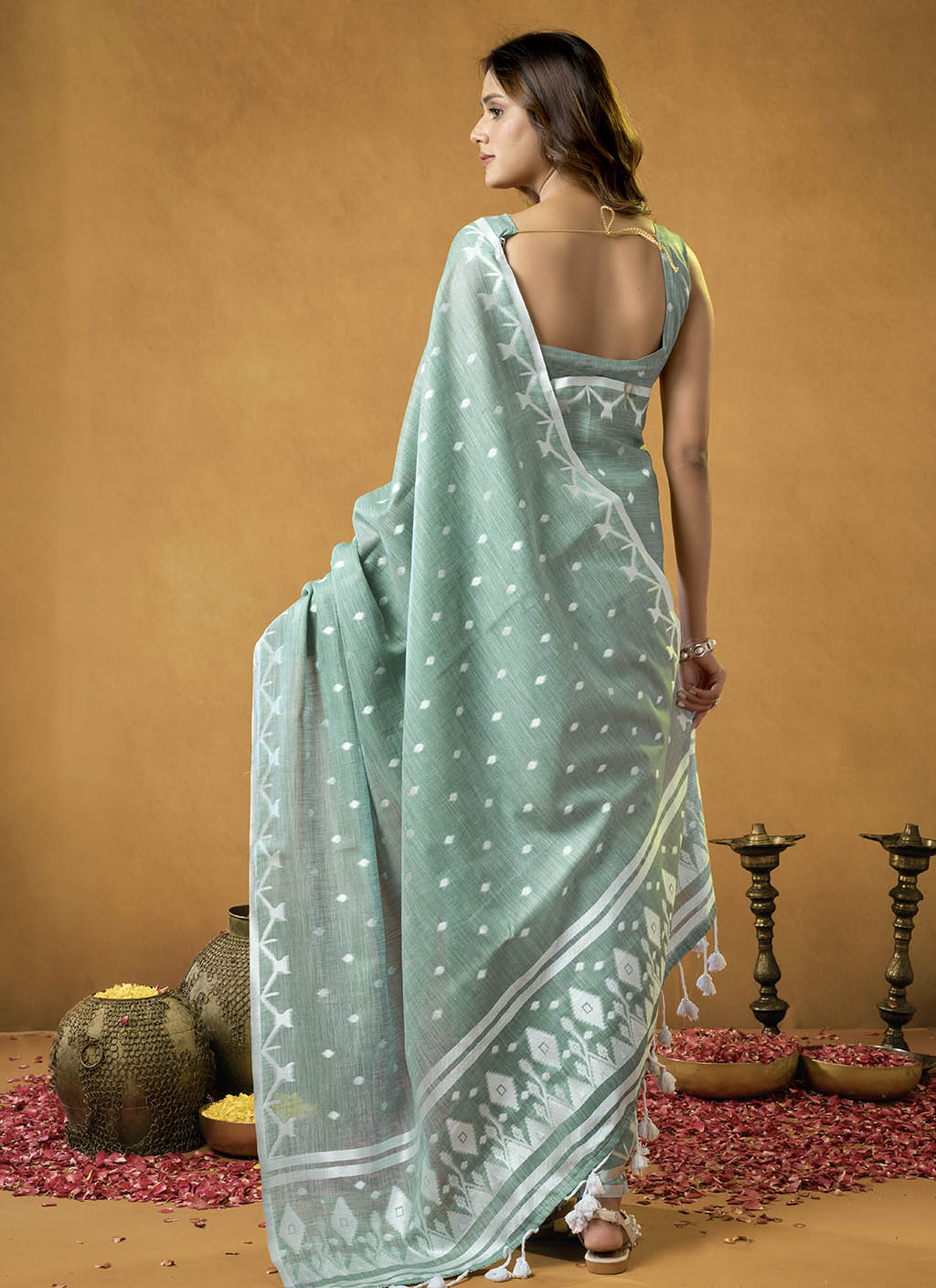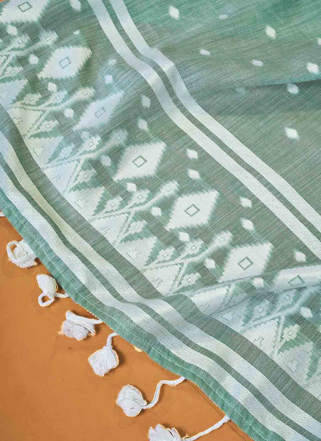 Pattern : Chikankari Allover Weave With Border & Pallu. Attached Beautiful Tassles
