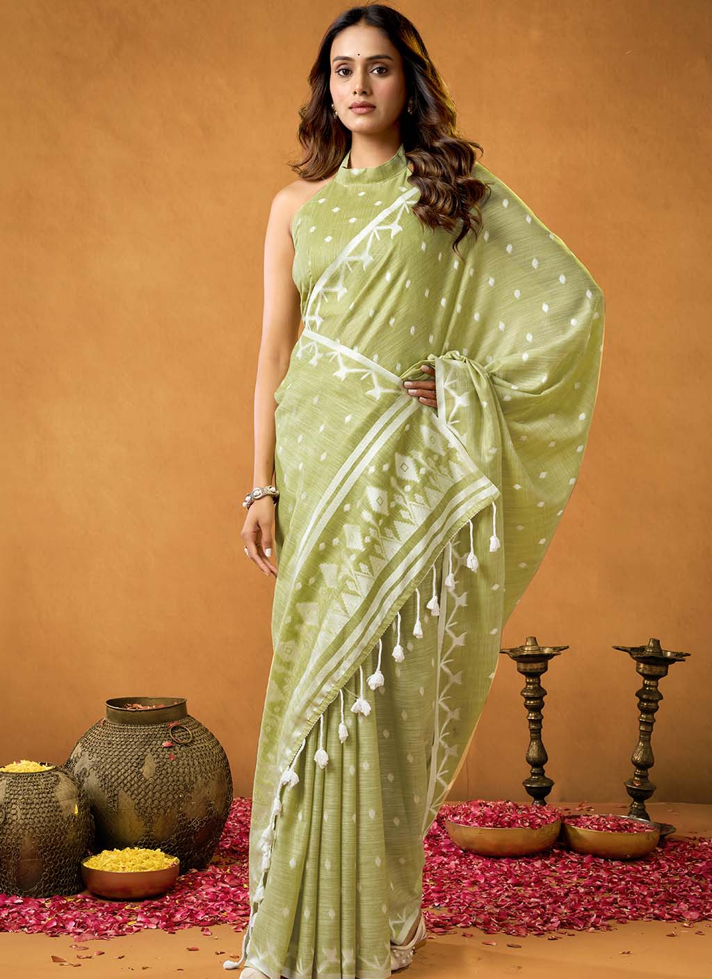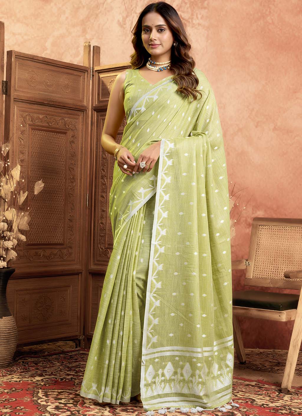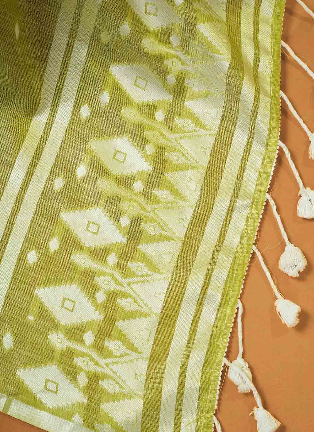 Pattern : Chikankari Allover Weave With Border & Pallu. Attached Beautiful Tassles