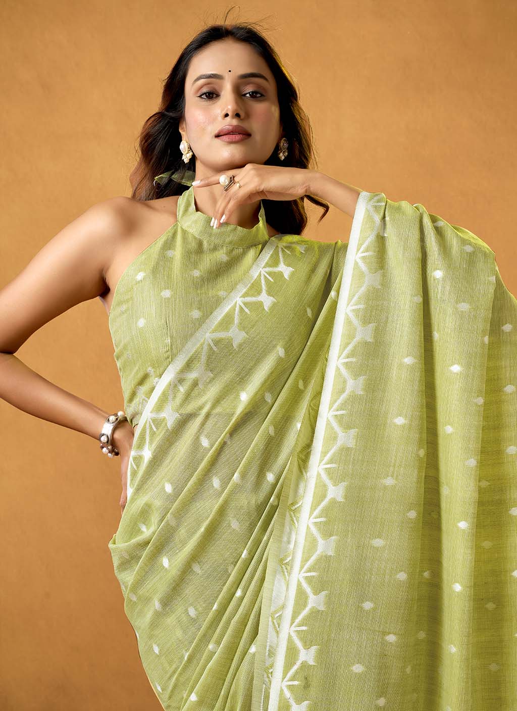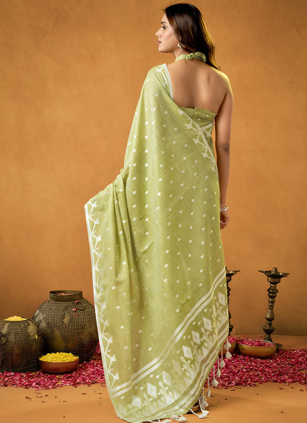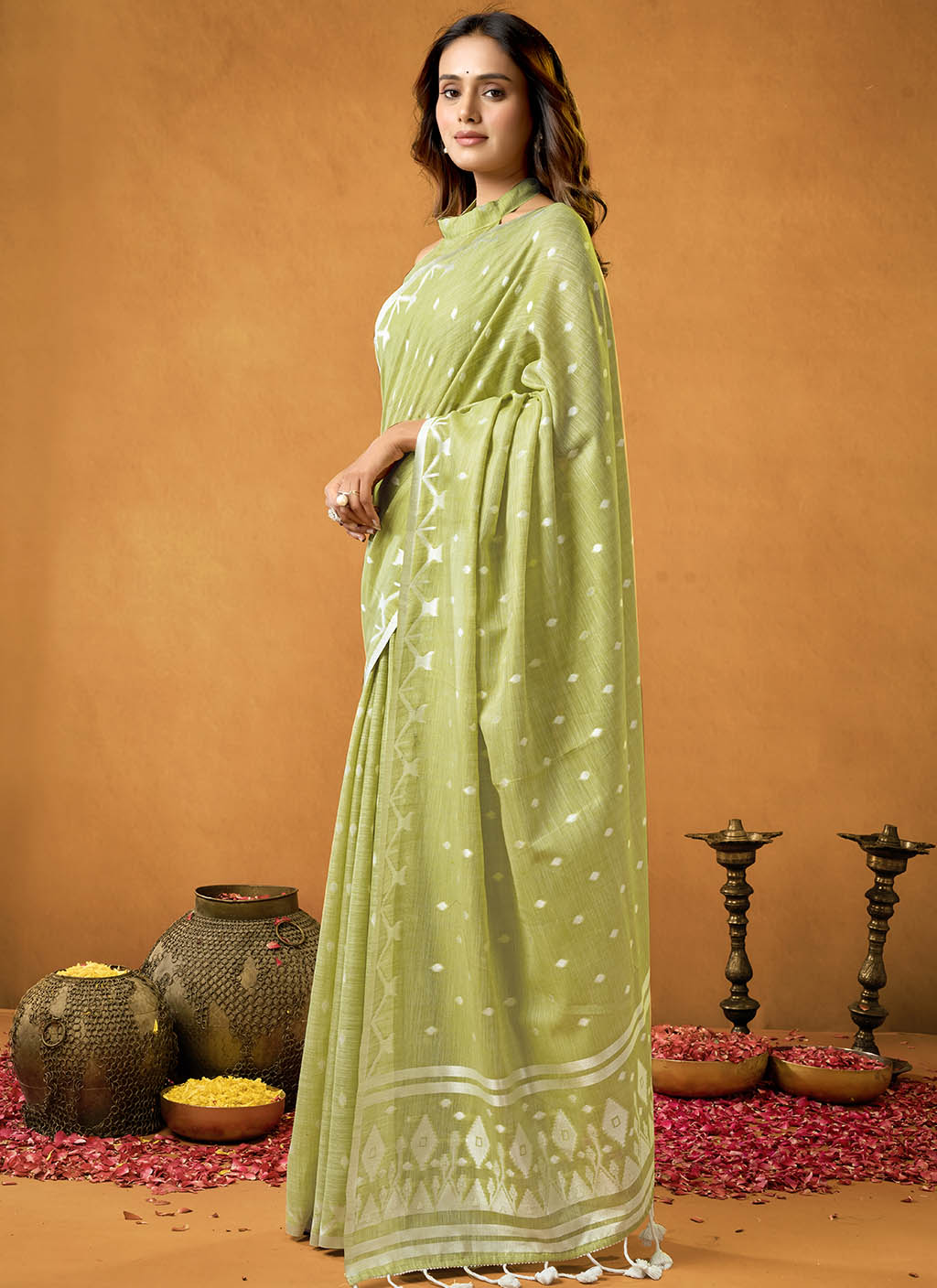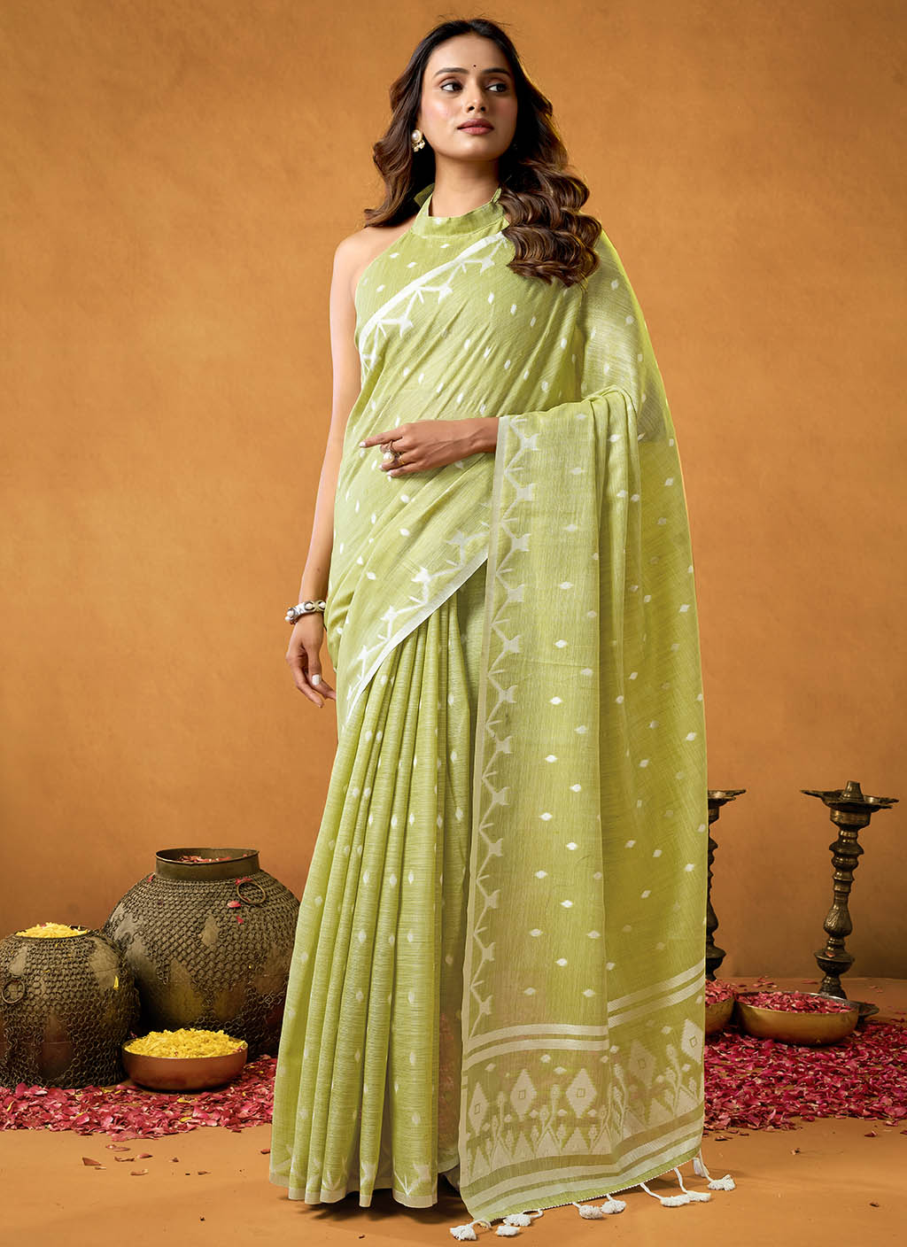 Pattern : Chikankari Allover Weave With Border & Pallu. Attached Beautiful Tassles