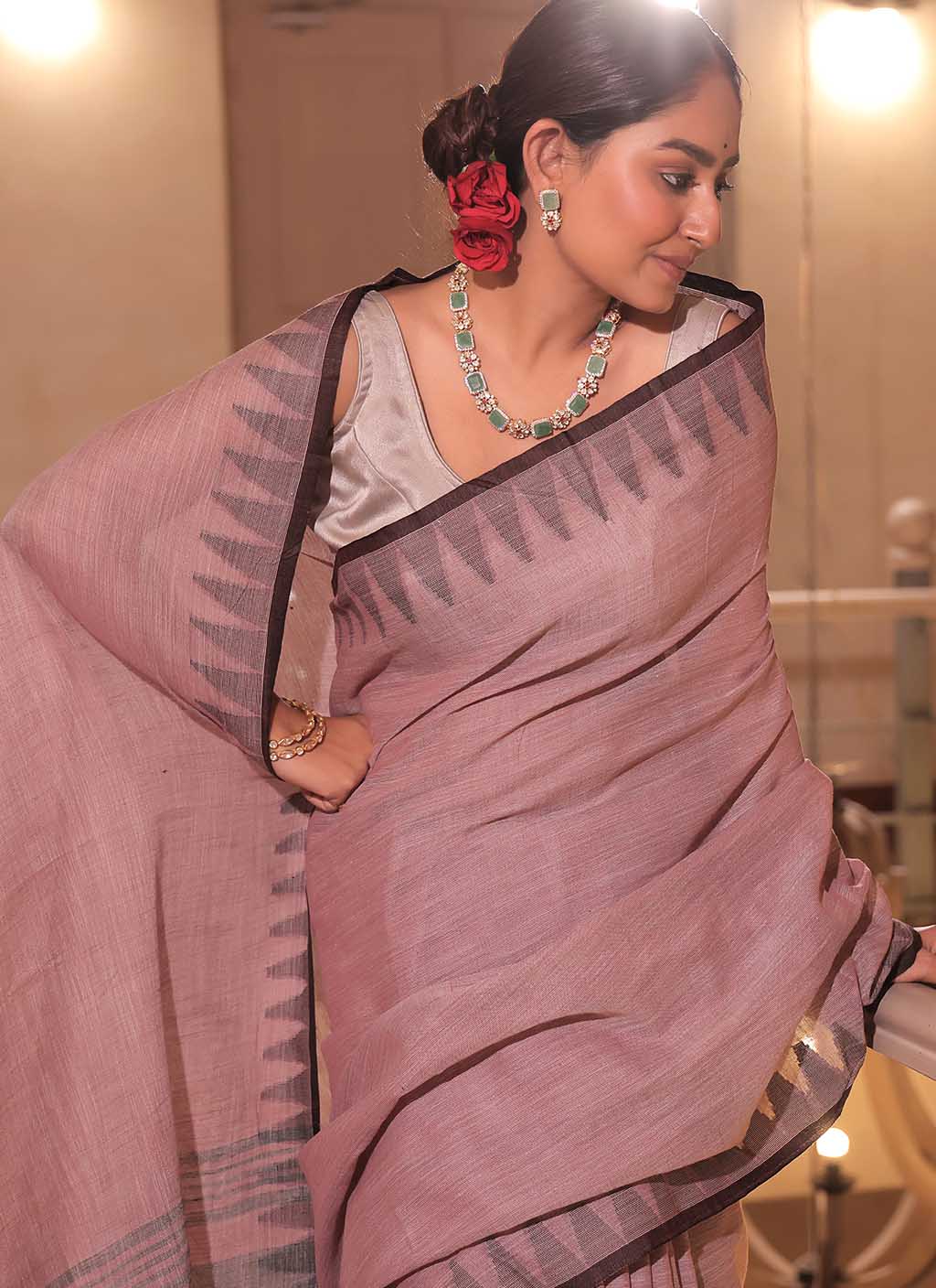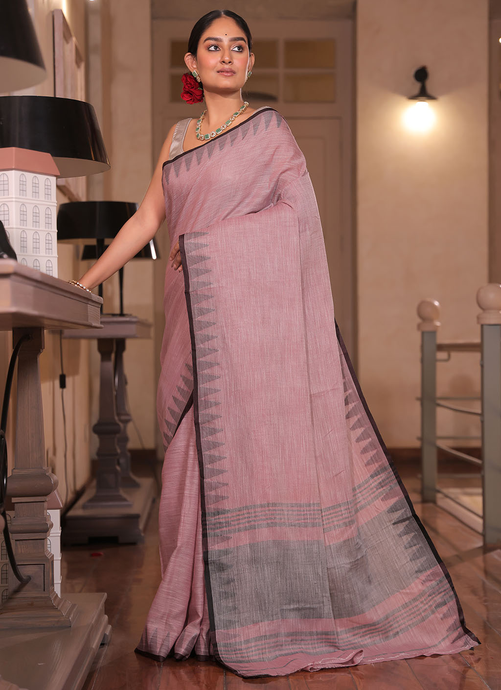 Saree Fabric : Pure Linen Black Temple Weave Border & Pallu.