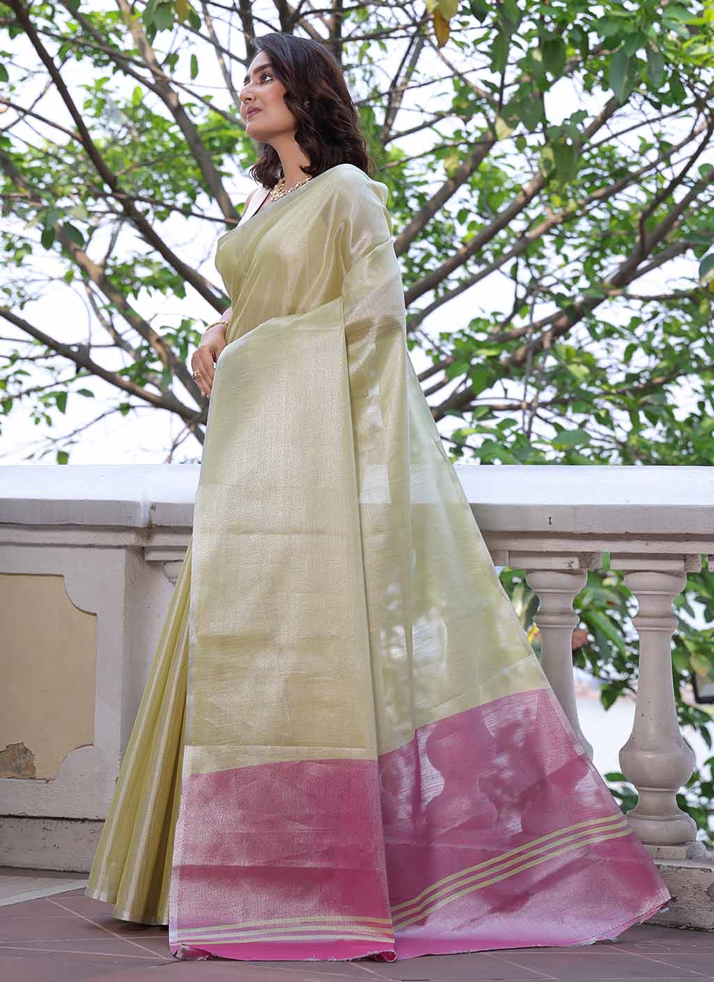 Pure Plain Tissue Silk Saree