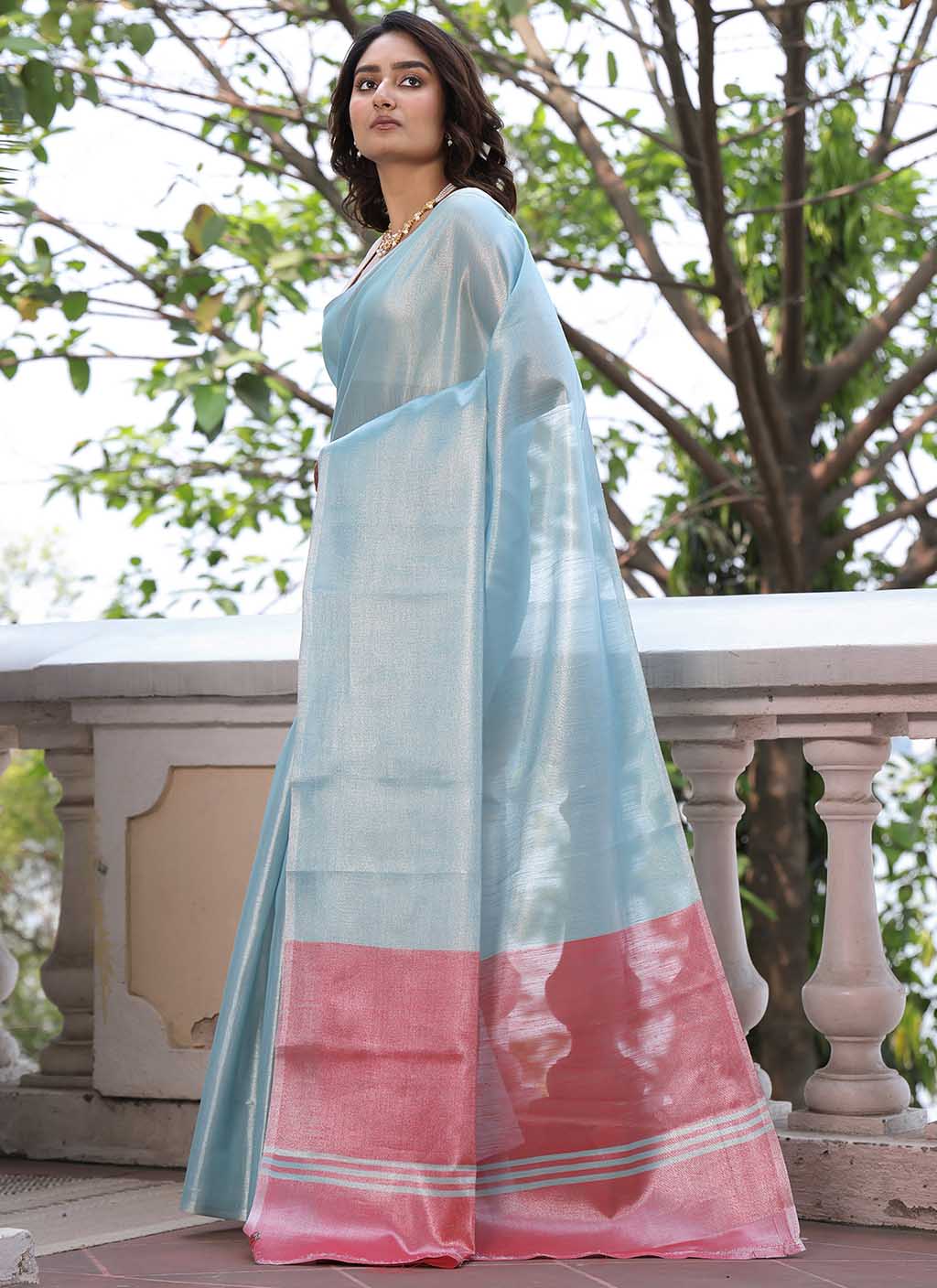 Saree Fabric : Pure Two Tone Tissue Silk With Contrast Pallu