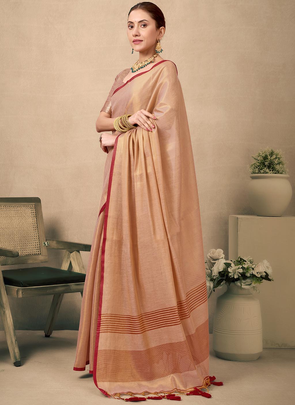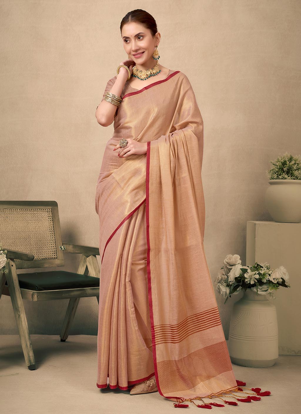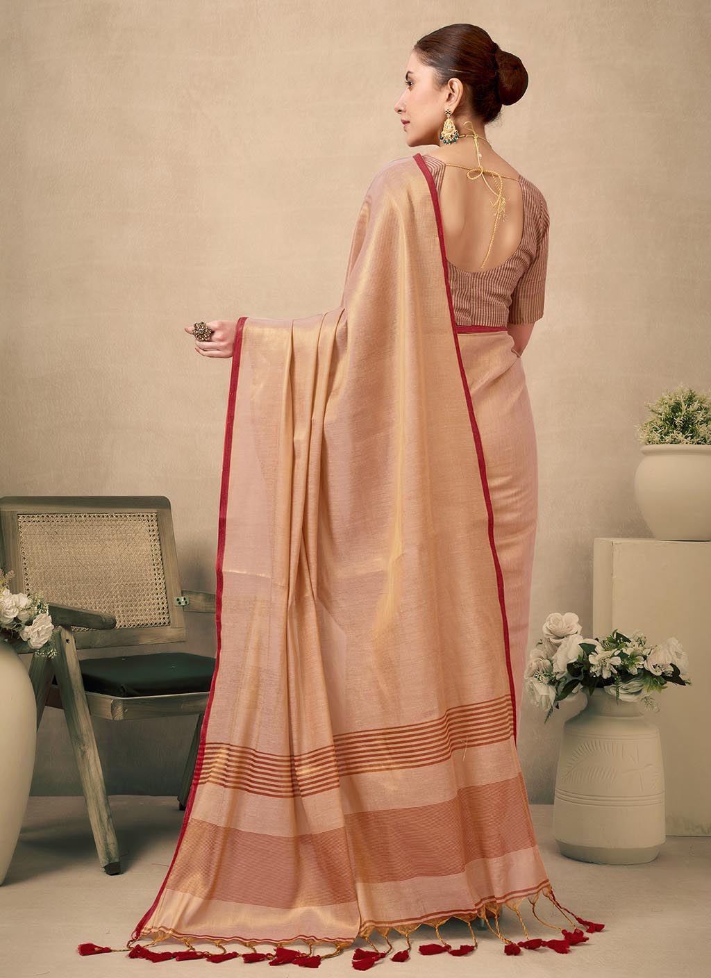 Pattern : Red Colour Contrast Weave Thin Border & Pallu With Beautiful Tassels