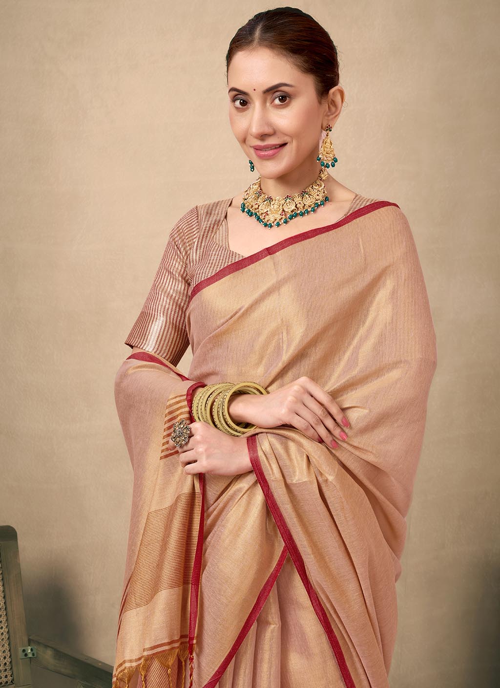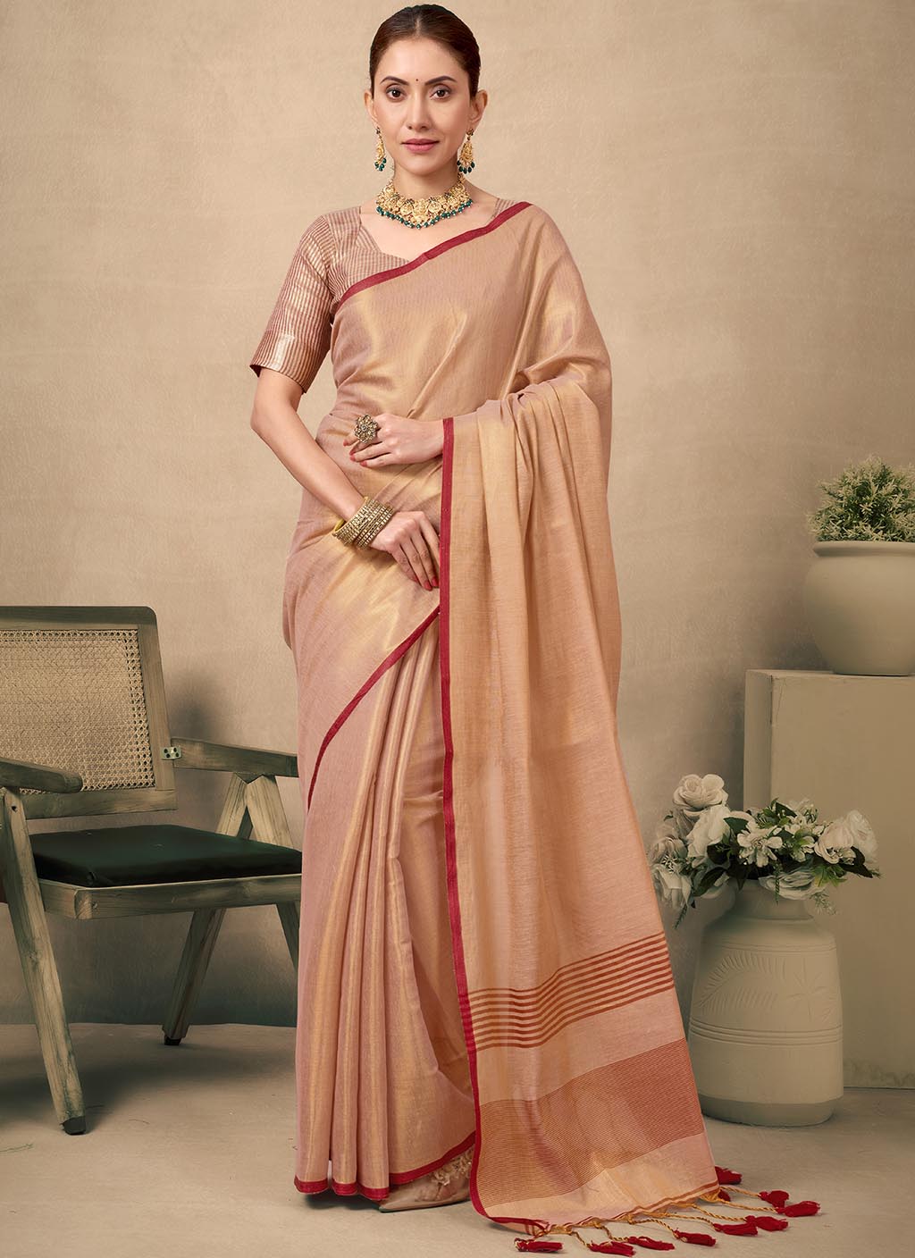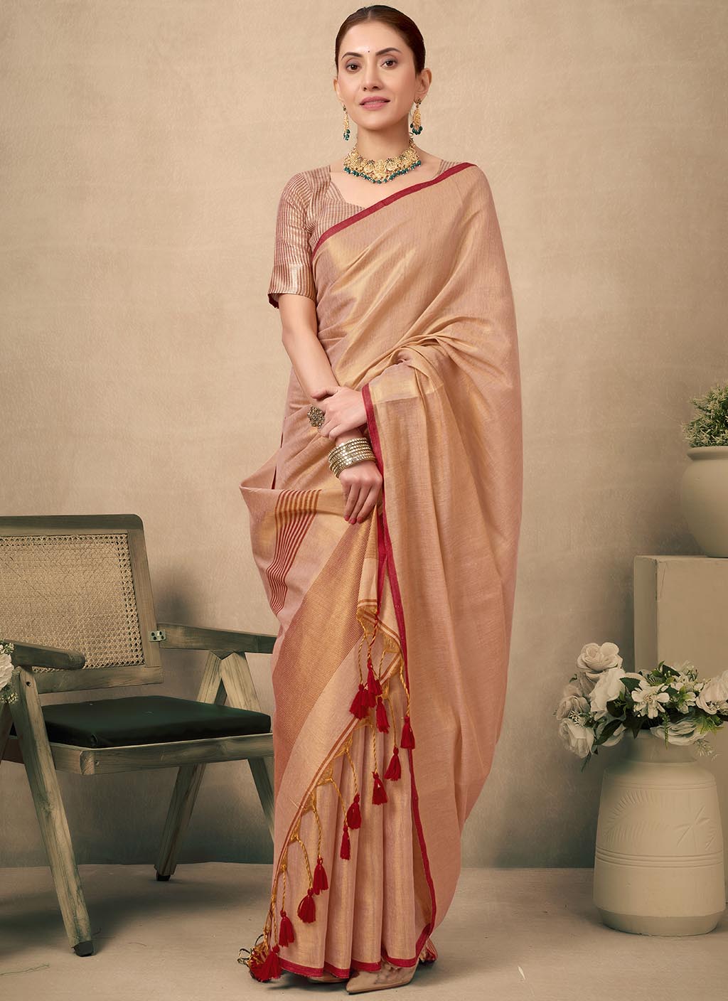 Pattern : Red Colour Contrast Weave Thin Border & Pallu With Beautiful Tassels