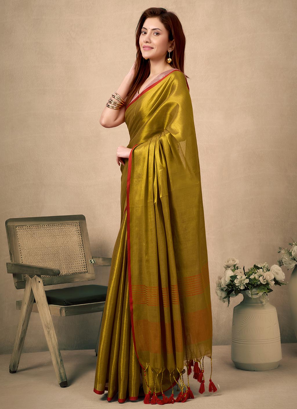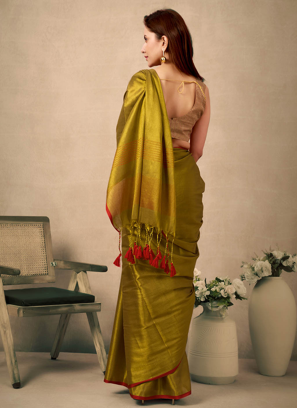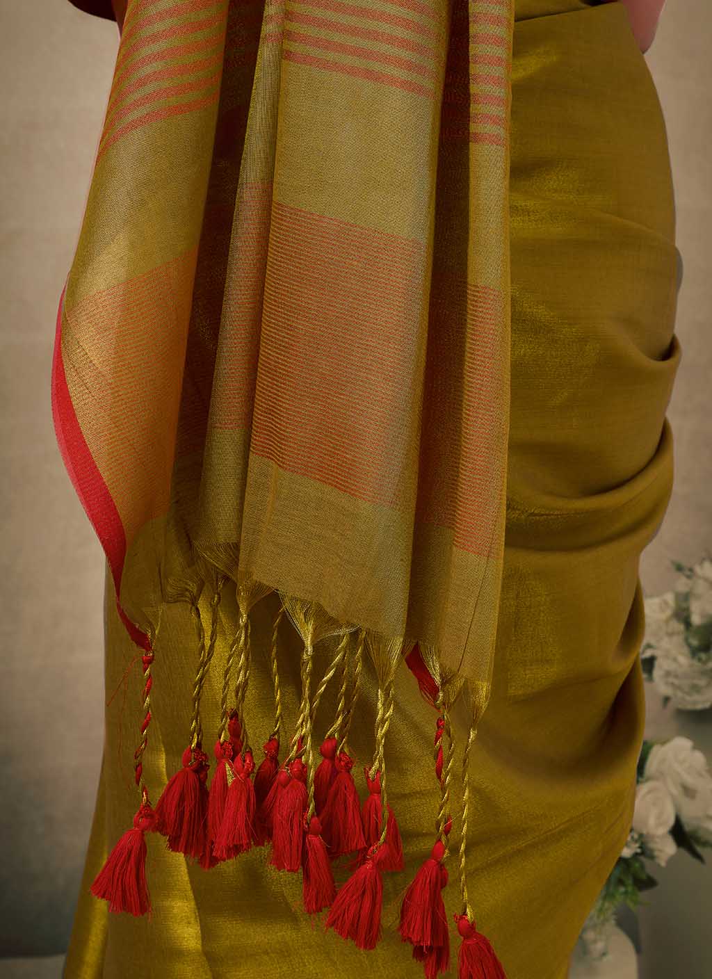 Pattern : Red Colour Contrast Weave Thin Border & Pallu With Beautiful Tassels