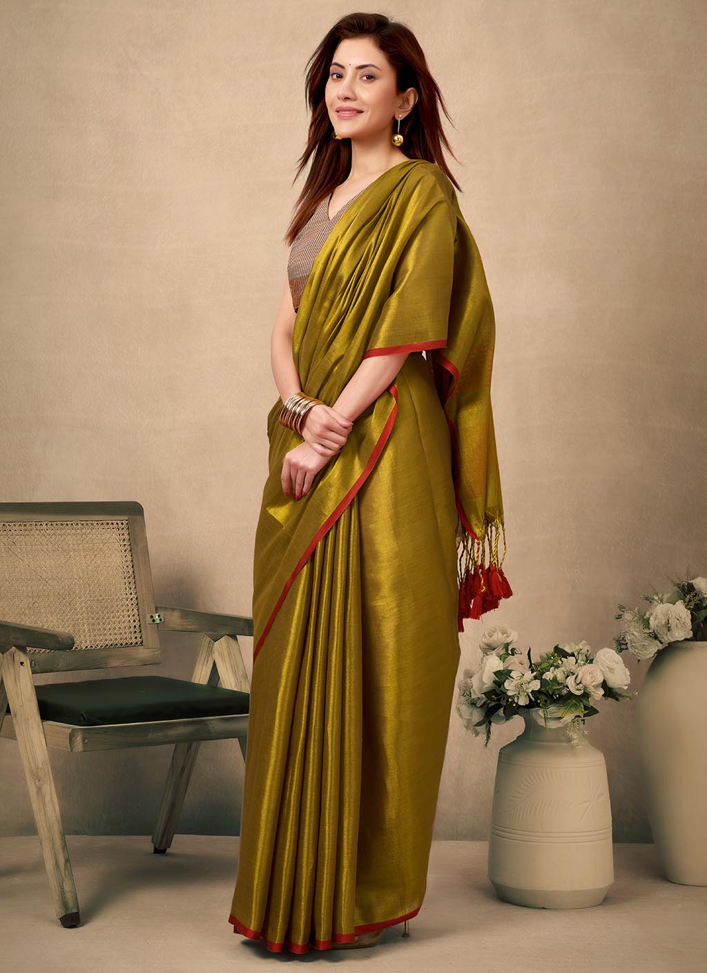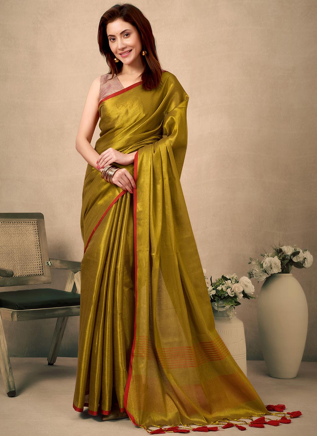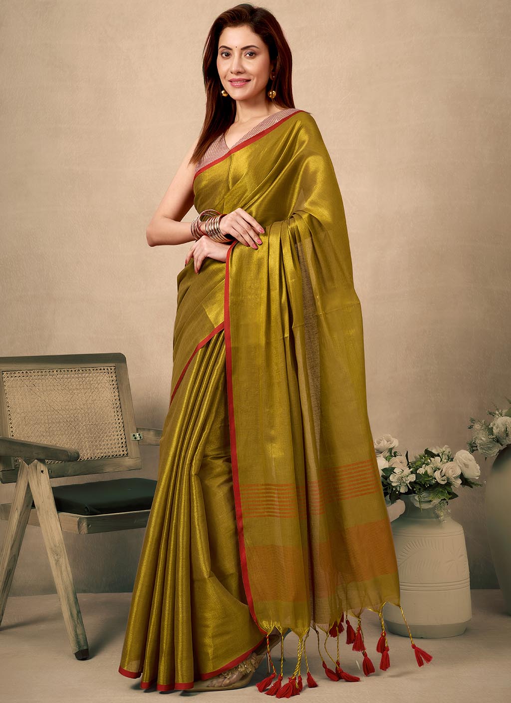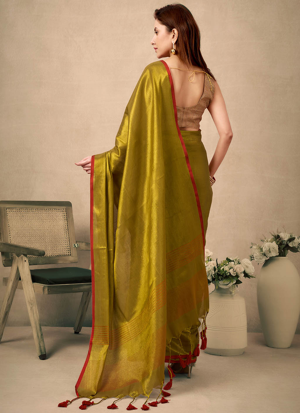 Pattern : Red Colour Contrast Weave Thin Border & Pallu With Beautiful Tassels